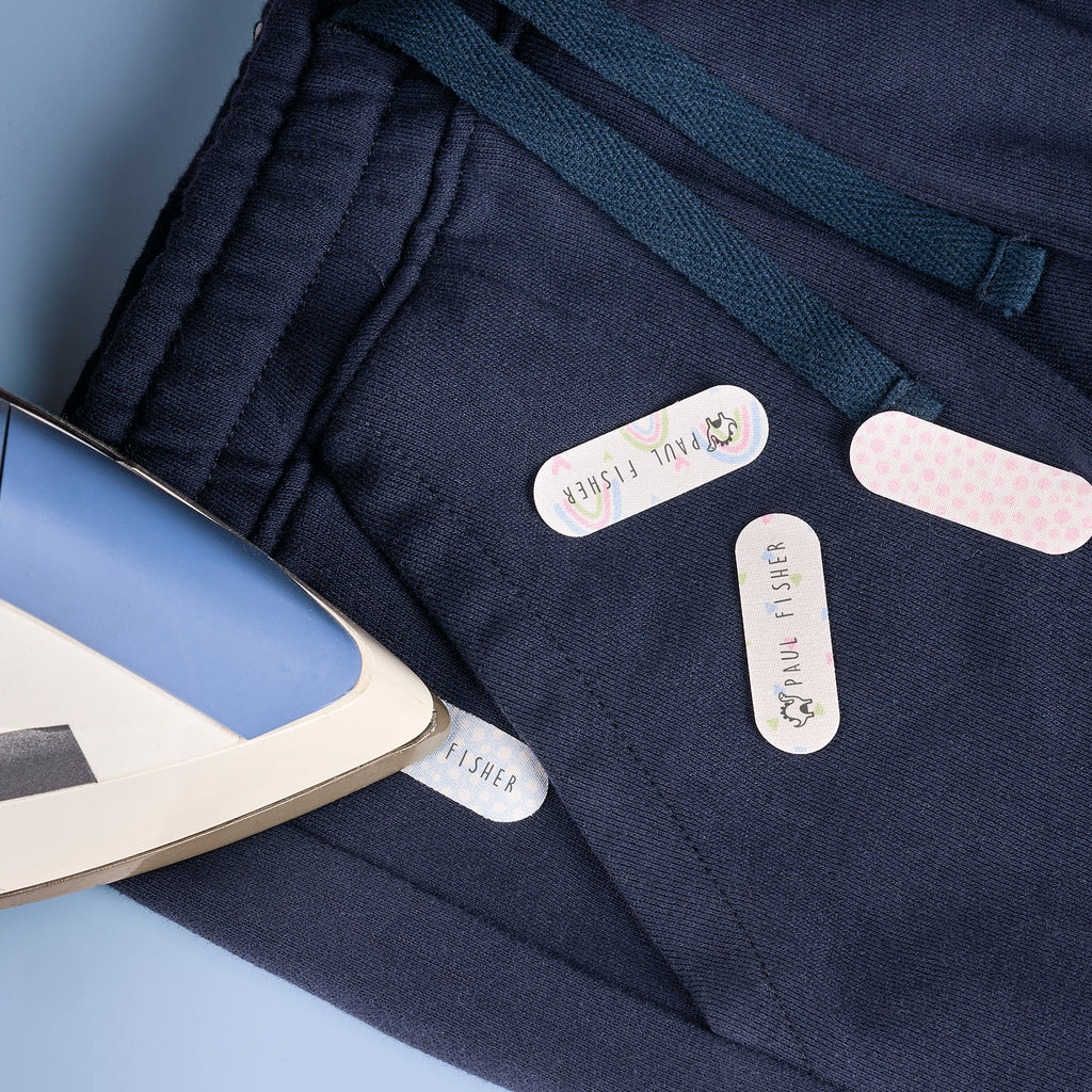 The iron-on labels can be personalized directly with the DIY MARKY stamp – turning each label into an individual name tag. No tedious writing with a pen – just stamp, iron on and done!