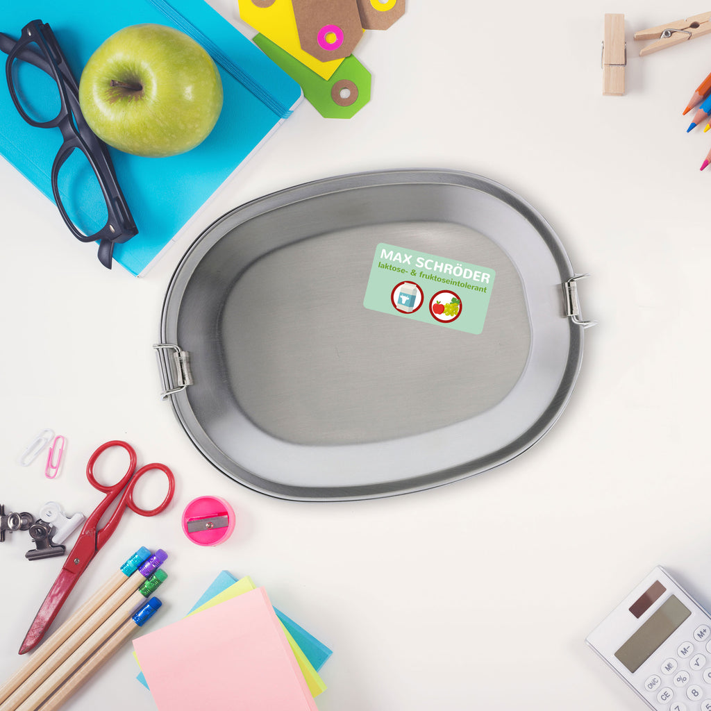 Die Aufkleber lassen sich ganz einfach auf allen wichtigen Gegenständen anbringen, die dein Kind täglich nutzt – ob Brotdose, Trinkflasche, Federmäppchen, Schulmaterialien oder Dokumente.