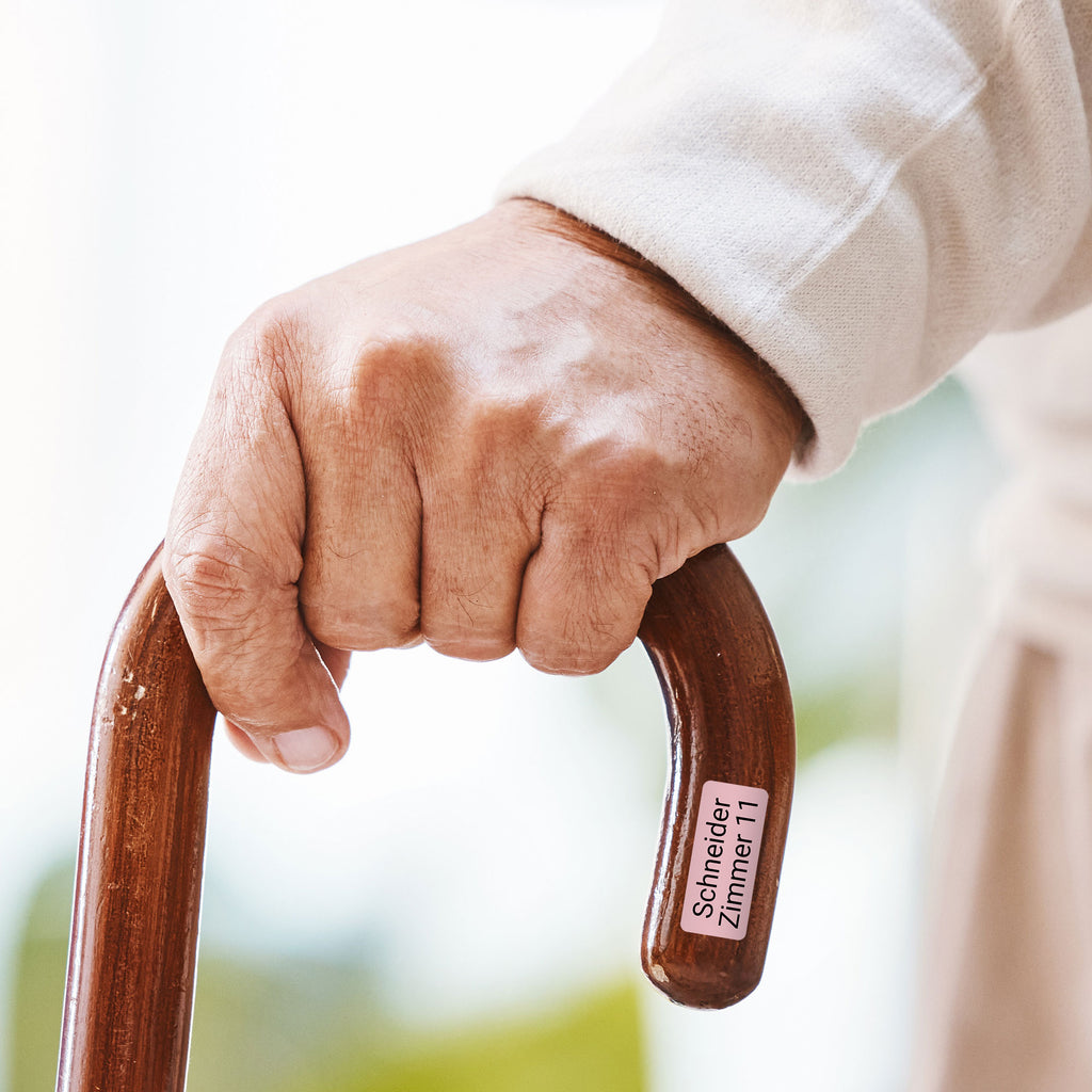 Ob im Bewohnerzimmer, in der Pflegeeinrichtung oder unterwegs: Die Aufkleber haften auf allen glatten und sauberen Flächen und sorgen dafür, dass alles seinen Besitzer behält.