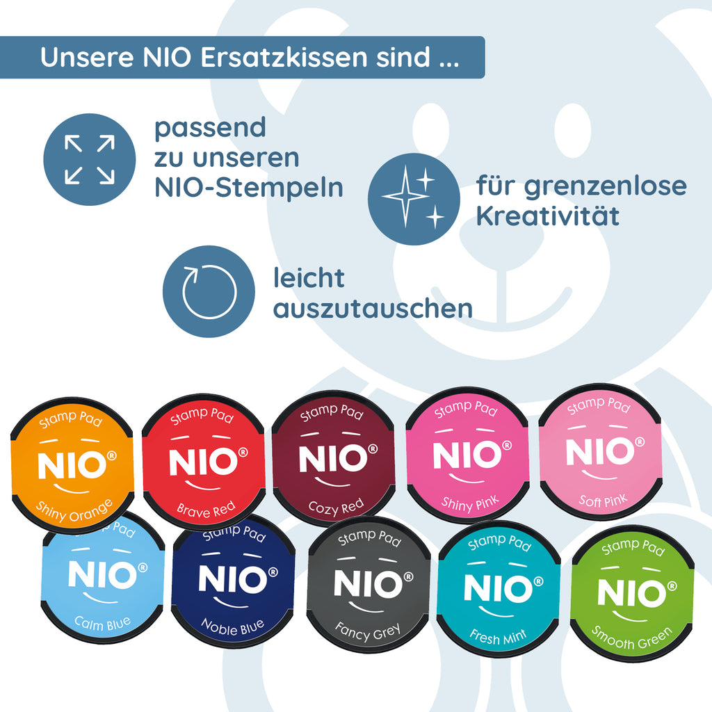 Die in den speziell für NIO Selbstfärber- Kissen verwendeten Stempelfarben sind als dokumentenecht nach DIN (Deutsche Industrie Norm) ISO 14145-2 geprüft und zertifiziert.