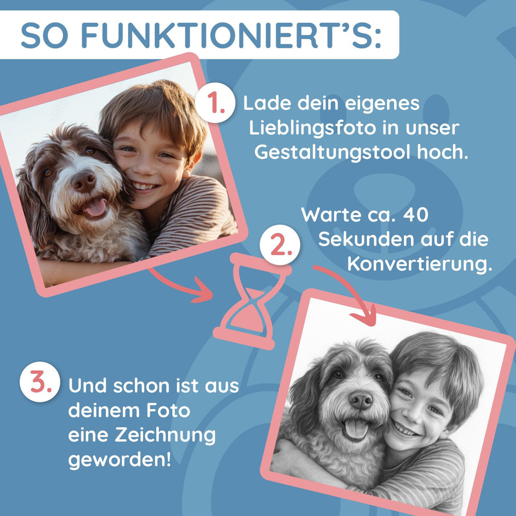 Individuelle Bedruckung mit einer Bleistiftzeichnung nach deinem Foto